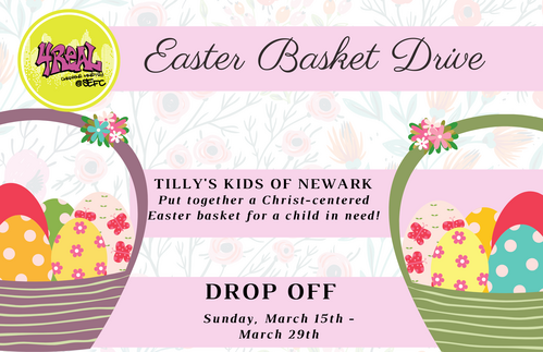 We have an opportunity to serve kids and families in need! 4REAL Worship will be collecting Easter baskets for kids in Newark from now until Palm Sunday. If you would like to donate a basket, please fill a basket with gospel-centered gifts and some treats (no weapons/violent toys). Please wrap your basket in cellophane (so no objects fall out!). Baskets can be dropped off at the table in the church hallway on Sundays.