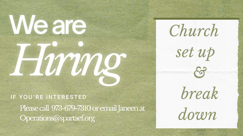 We are looking for individuals who can set up chairs in our worship center and in classrooms. If you're interested in working 2-3 hours at the church on the weekends,